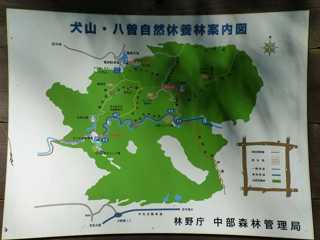 南に八曽キャンプ場・南東に八曽の里キャンプ場・西北に犬山キャンプ場があり、北西には山の神というポイントがあります。