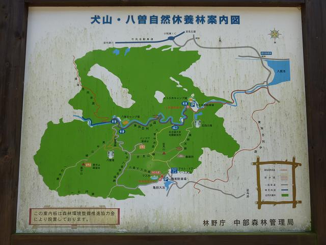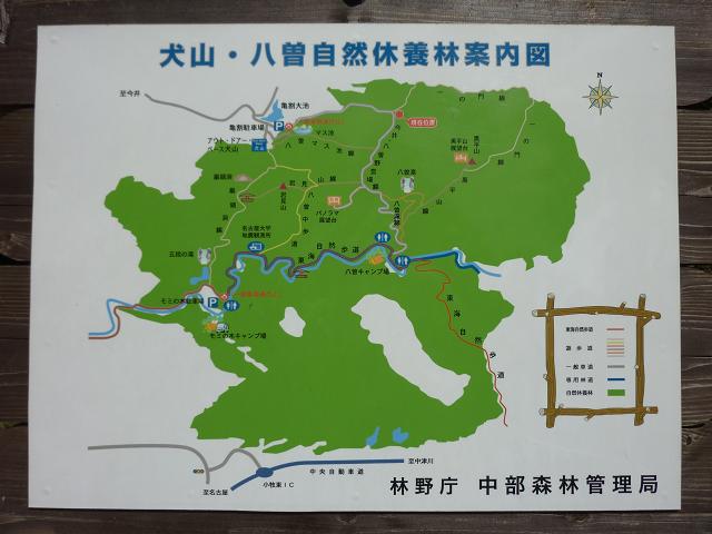 八曽山は入鹿池の北東に位置し、八曽自然休養林内に位置します。
