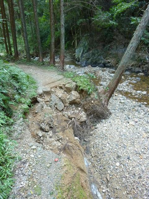道はまっすぐ続いており、東海自然歩道や八曽の里キャンプ場(川沿いに進む)へ行くには、まっすぐ進みます。(上段右写)