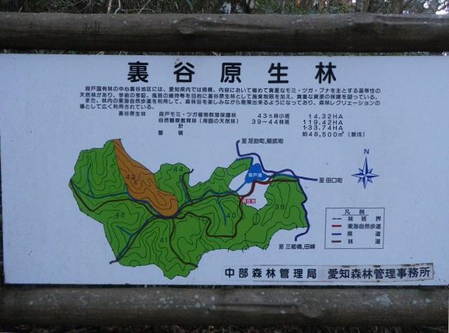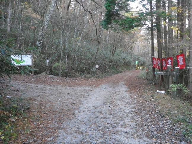 分岐の左側には、段戸裏谷の原生林への入り口があります。