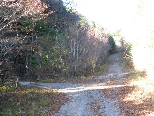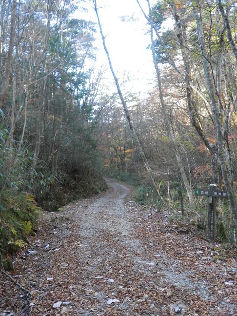 先程通過した菜畑林道との分岐に戻り、道標に従い菜畑林道を進みました。