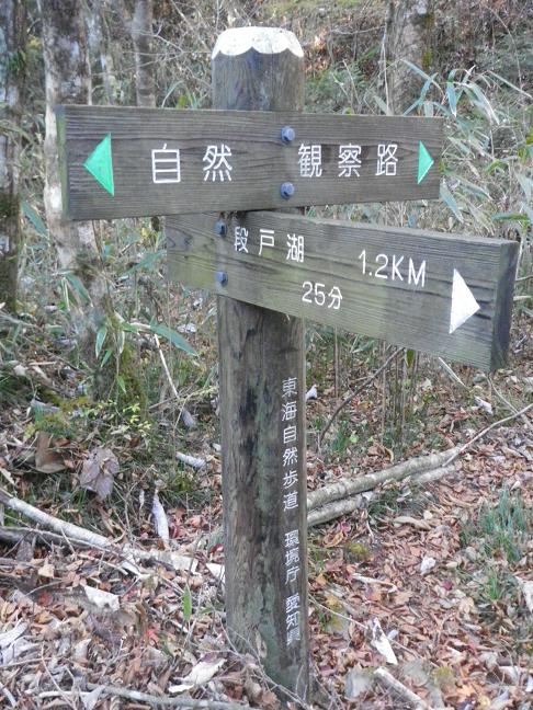 ここを右折し自然観察路方面へ進んでも、寧比曽岳への登山道(東海自然歩道)へ出ます。