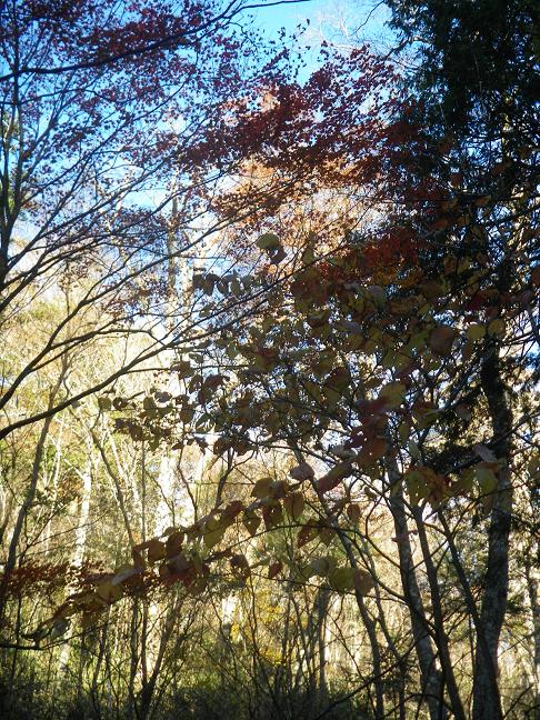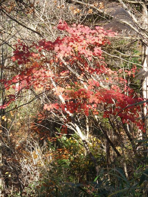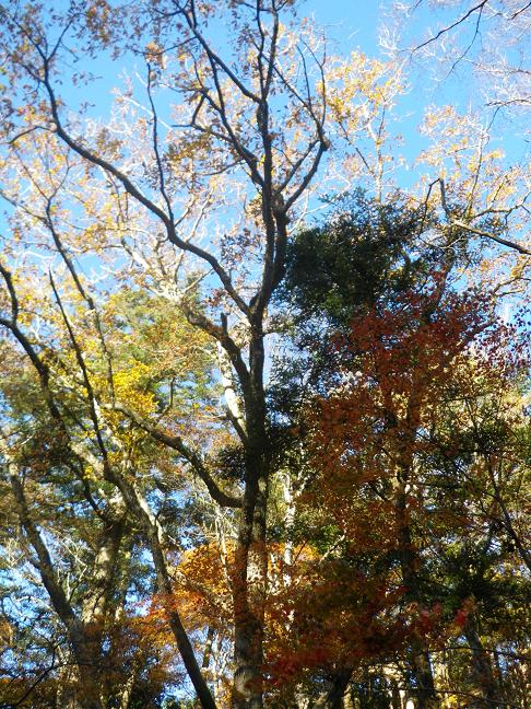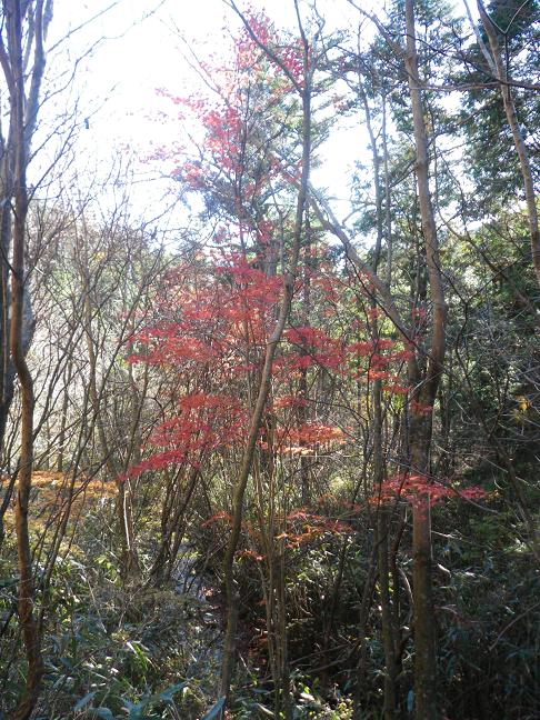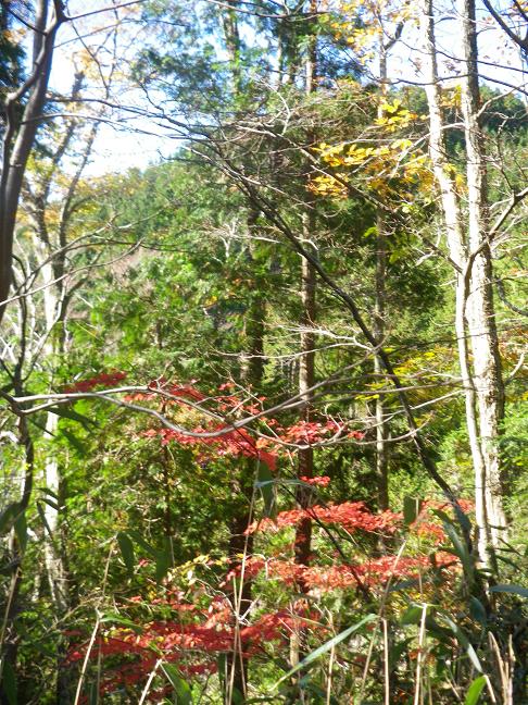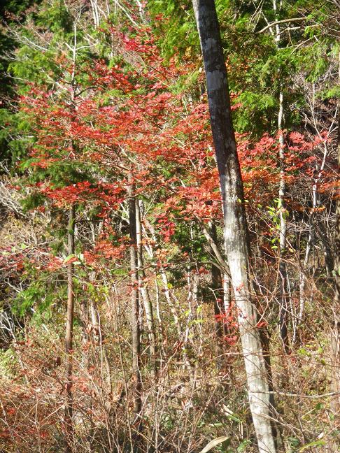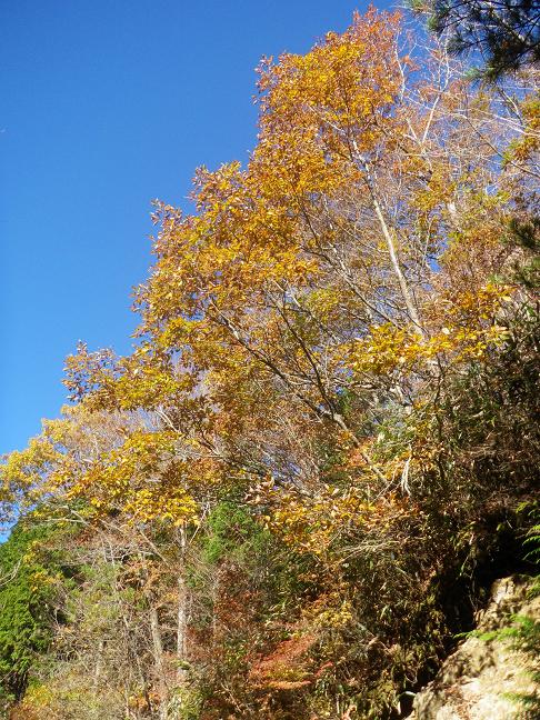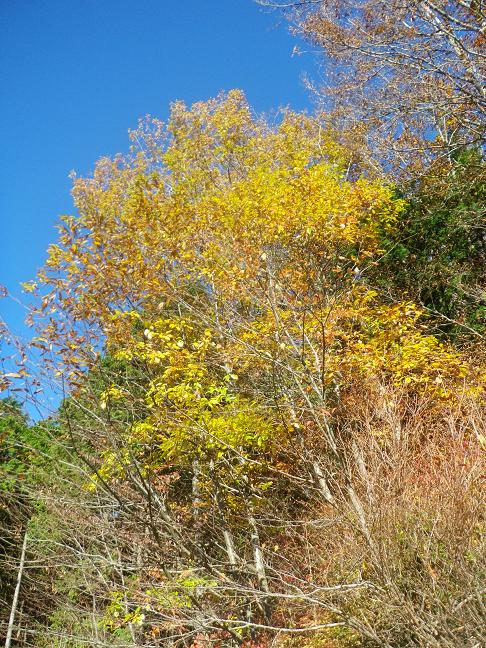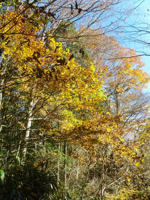 寧比曽岳は三河高原最高なのだそうで、薄暗いクマザサが茂る植林地帯を抜けて富士見峠へと続く尾根に出ると、一気に明るく開けて素晴らしい紅葉を楽しむことが出来ました。