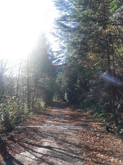 (上段左から3番目写にあるように、途中にテープで林道を塞いだ箇所があります。)