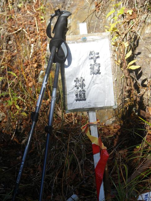 分岐(上段左写)があり、左には牛渡橋があり(上段中・右写)、直進すると牛渡林道です(下段写)。