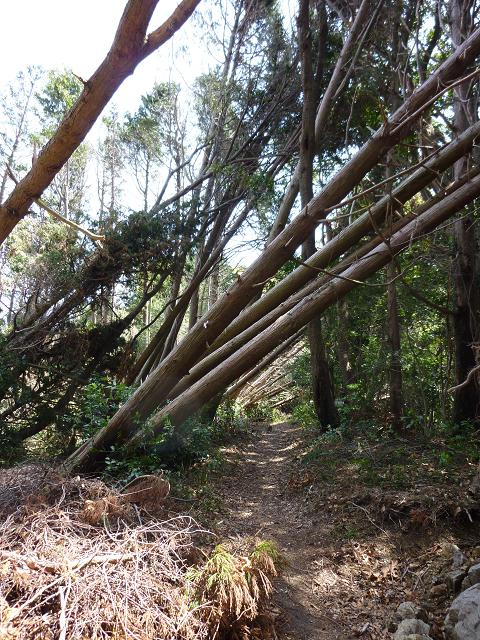 再び倒木トンネル(左写)をくぐると、なんとも穏やかで美しいトレイルになります。