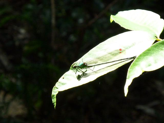 夕日に照らされるトンボ(アサヒナカワトンボかニホンカワトンボのオス)が綺麗でした。
