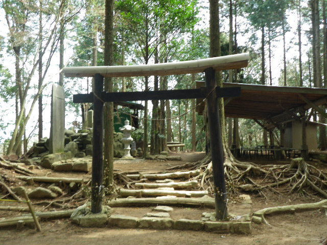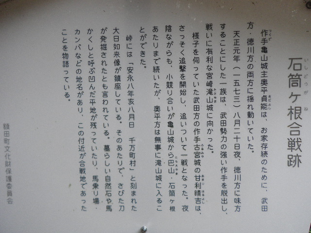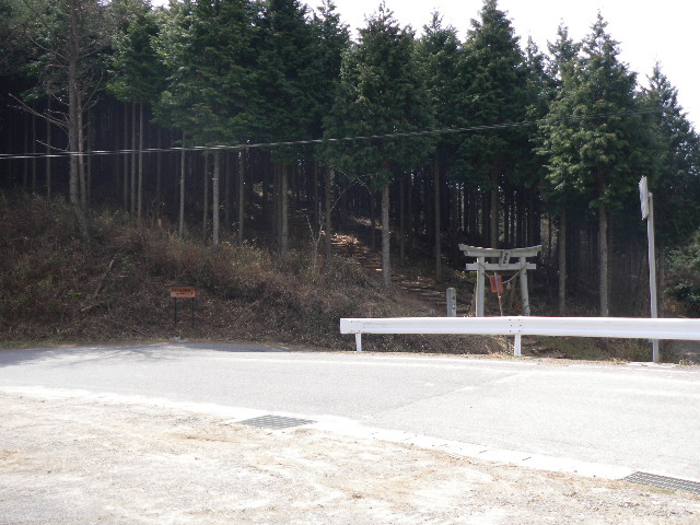 鳥居近くには巴山牧場をかすめて古戦場跡へ向かう林道があり、案内板もあります。