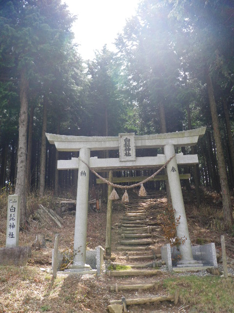 車道を少し進むと、白髭神社の鳥居が見えてきます。