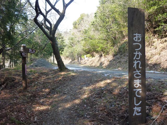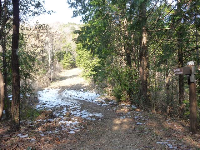 山頂から1.2kmほど下ったところで林道に出ました。