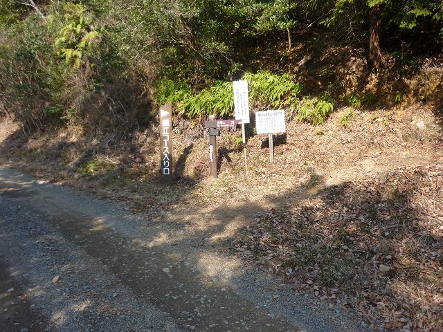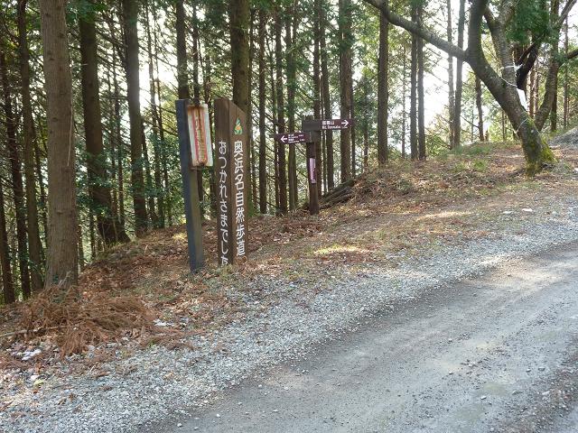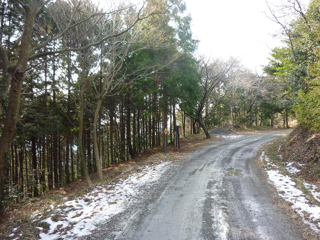ベンチがあるポイントを過ぎて、少し進むと扇山林道に出ます。