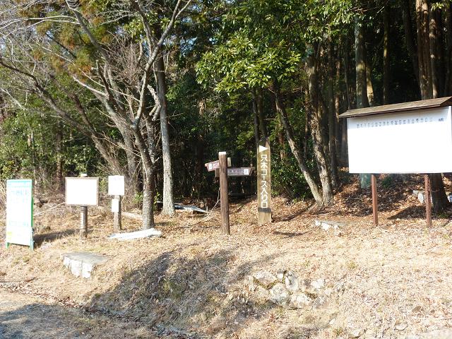 鉄塔の裏へ周ってみると、陣座峠と瓶割峠へ続くトレイルの分岐がありました。