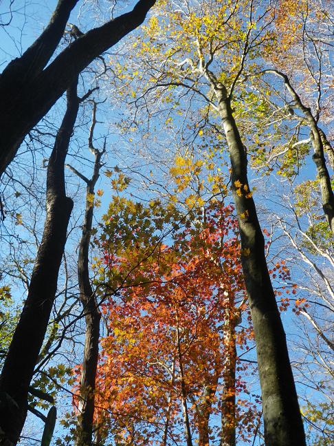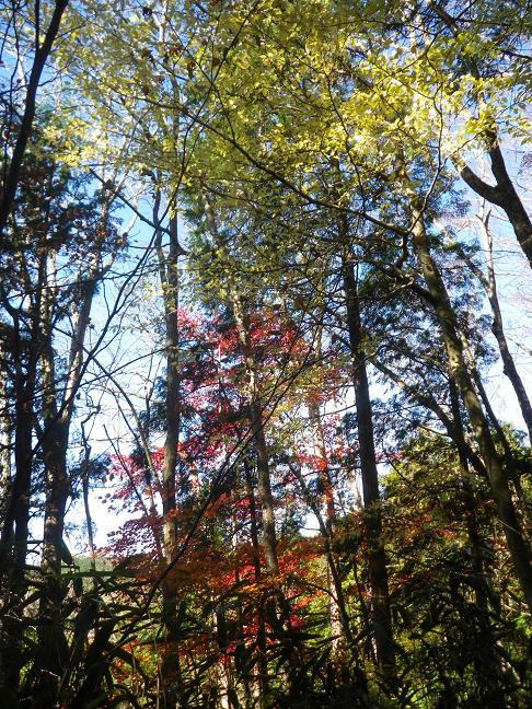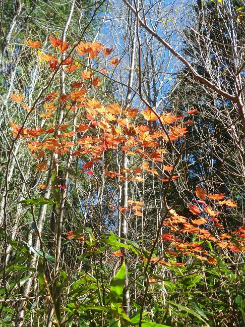 暫く植林地帯の中のトレイルを進むので、紅葉は時折楽しめる程度でした。