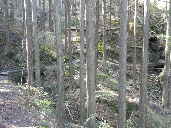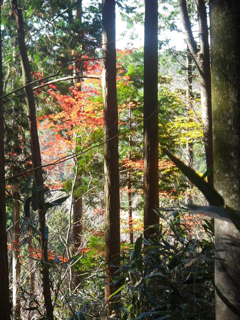 薄暗い植林地帯を歩いていると、時折射す日の光がとても嬉しくなります。