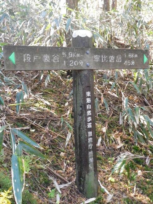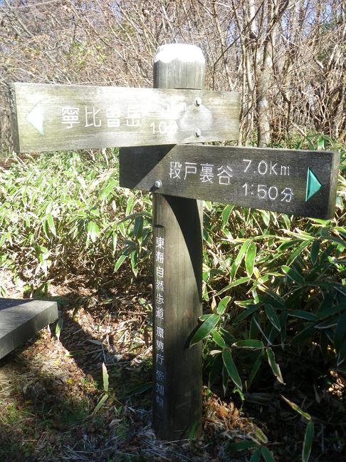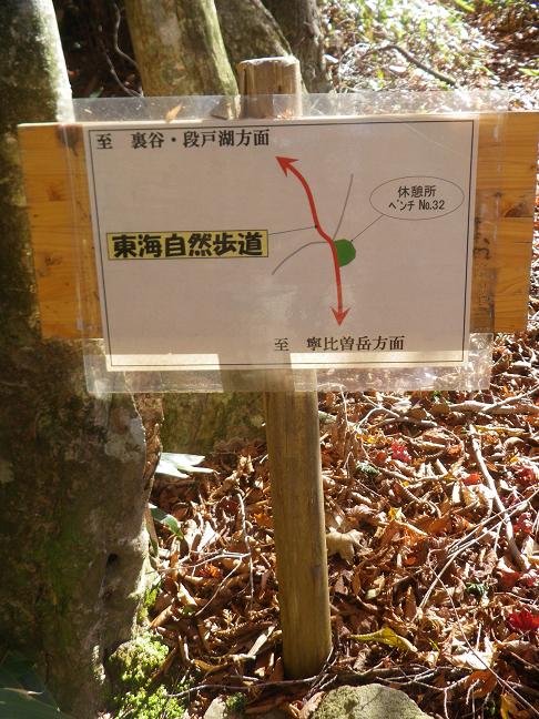 分水林道(左)と東海自然歩道(右)の分岐です。(左写)