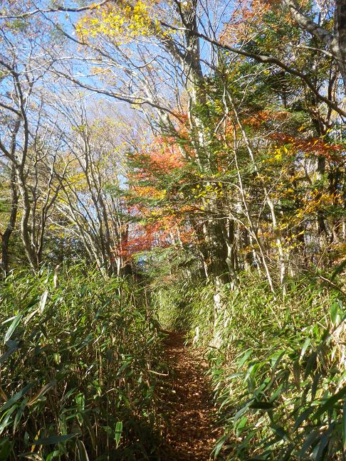 東海自然歩道は、終始背丈程のクマザサに覆われていました。(右写)