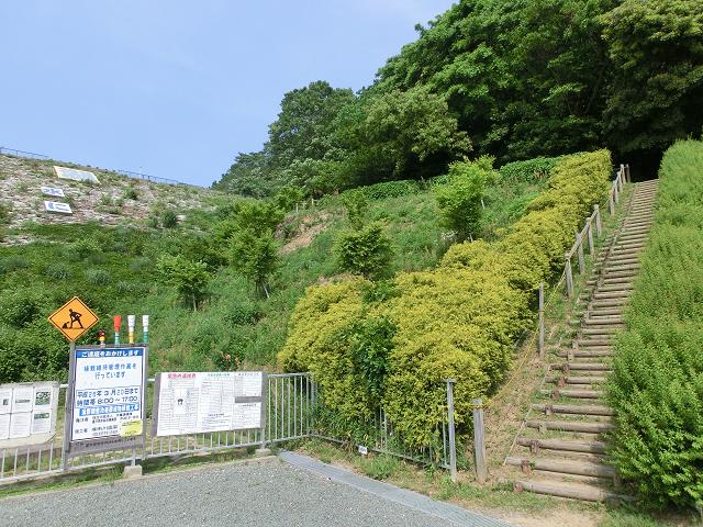 とよおか湖公園内を奥まで進むと土手の右手に階段があり、それを上っていくと土手の上方に出ることが出来ました。