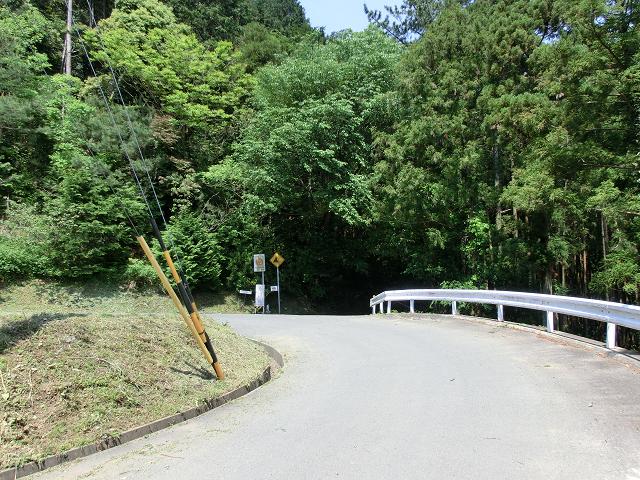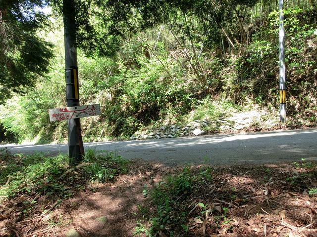 少し先の左カーブに、登山口を示す道標があり、右へ入る林道がありましたので、そちらへ進みました。