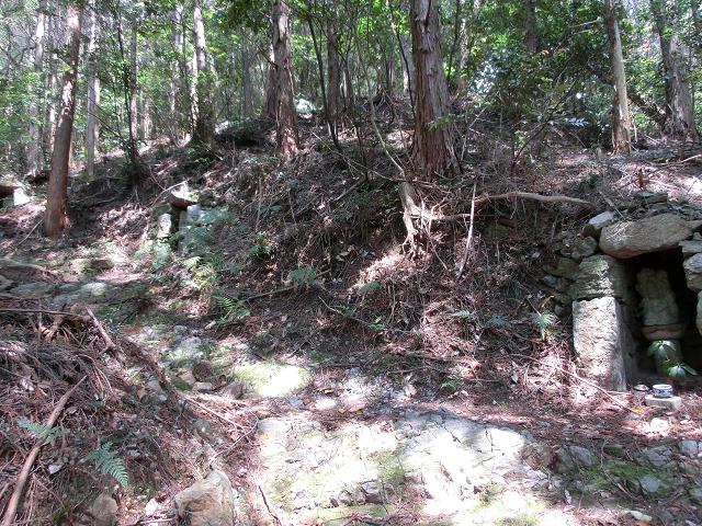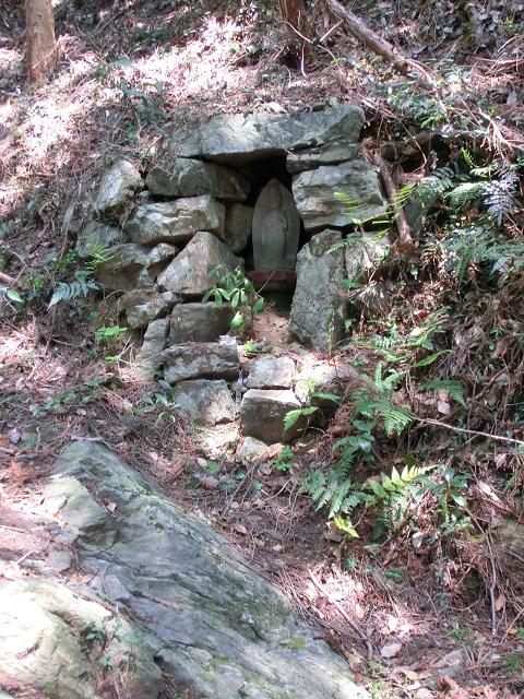 二股の間を上がっていくと、トレイル脇に石仏が幾つも現れだします。