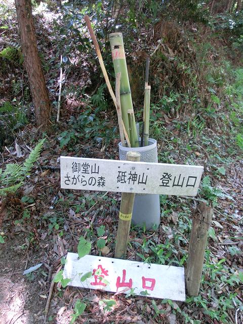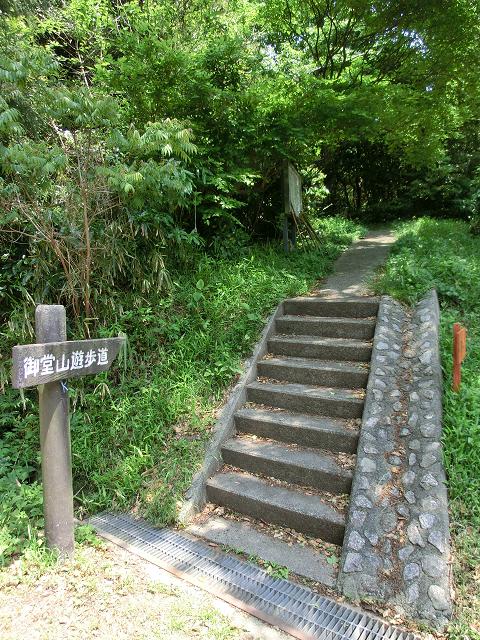 御堂山遊歩道入口は、相楽ヒメハルロード脇にありました。