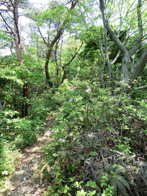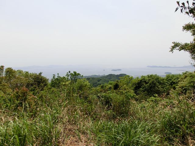 山頂からは眺望は得られませんが、山頂下からは少しだけ三河湾を見ることが出来ました。