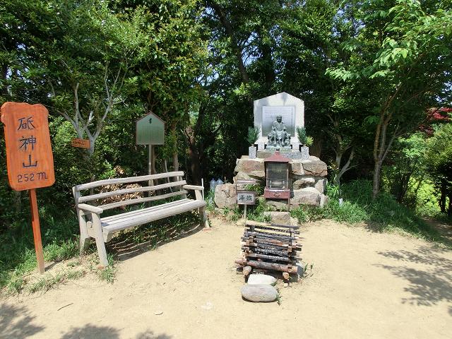 砥神山は、役行者が祀られている東山(中写)と見晴台がある西山(右写)があり、双耳峰となっています。