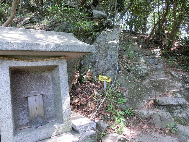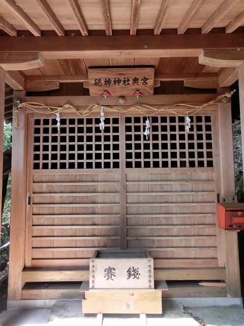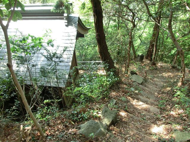 砥神神社奥宮へ向かって、短い急坂を下ります。