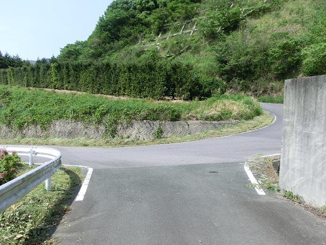 次の分岐(下段右写)を左折すれば、とよおか湖公園入口に着きます。