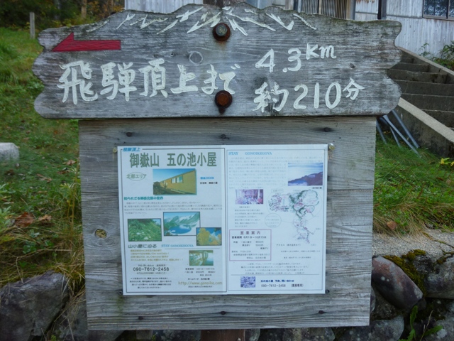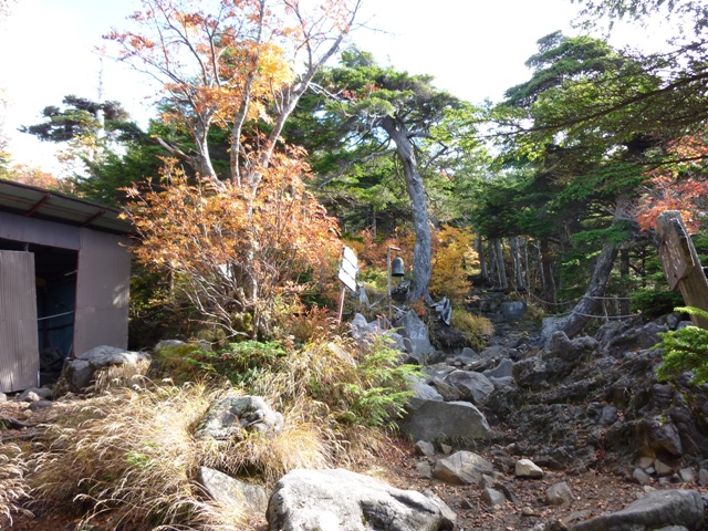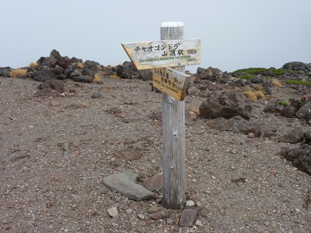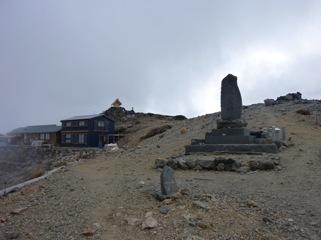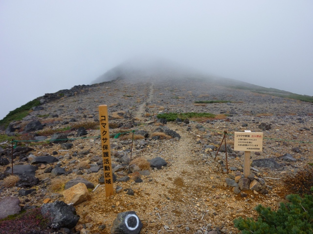 ここで1人のおじさんが五の池小屋から出てきて、ガスの中下山していきました。
