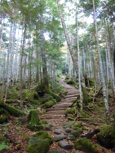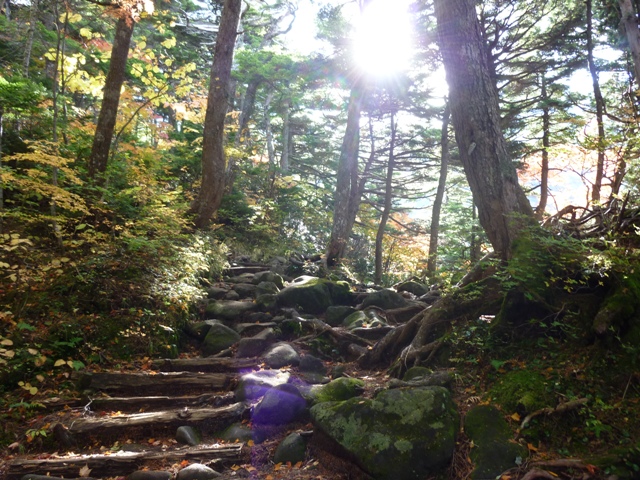 五の池小屋へ続くトレイル。(左写)