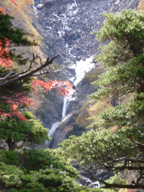 摩利支天山の山腹に滝が流れています。