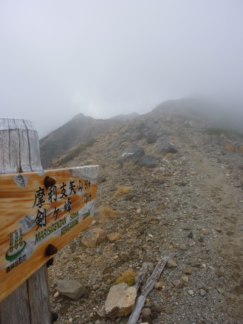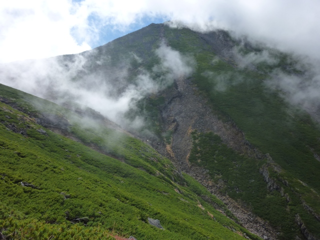 摩利支天山の雄姿に、ガスがかかりだしました。(中写)