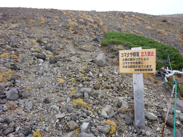 本峰とⅡ峰の間には、コマクサの保護活動区域があります。(中・右写)