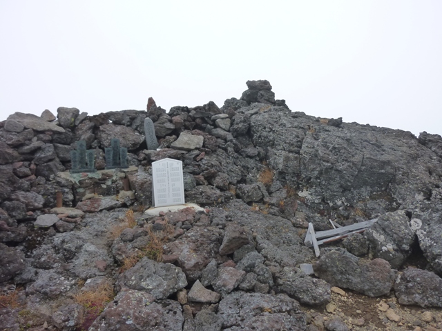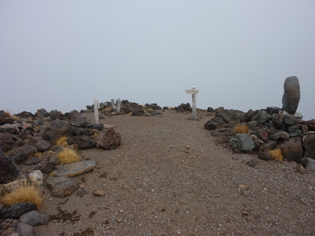 本峰に戻り、お昼を食べながらガスが切れるのを待ちました。