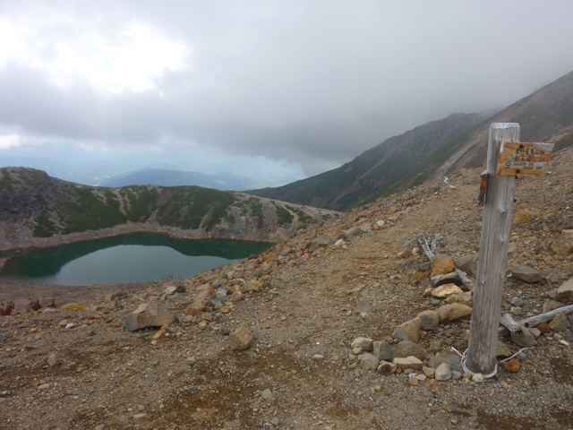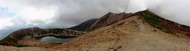 稜線の左側に四の池が広がります。