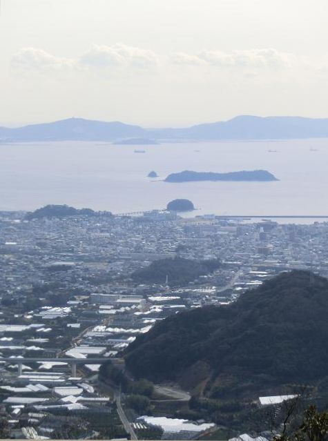 陽光が西浦の東の海面を照らし、そこだけ輝いていました。