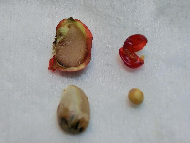 因みに、よく見かけるアオキ(左)やセンリョウ(右)の種は、右写の様のものでした。