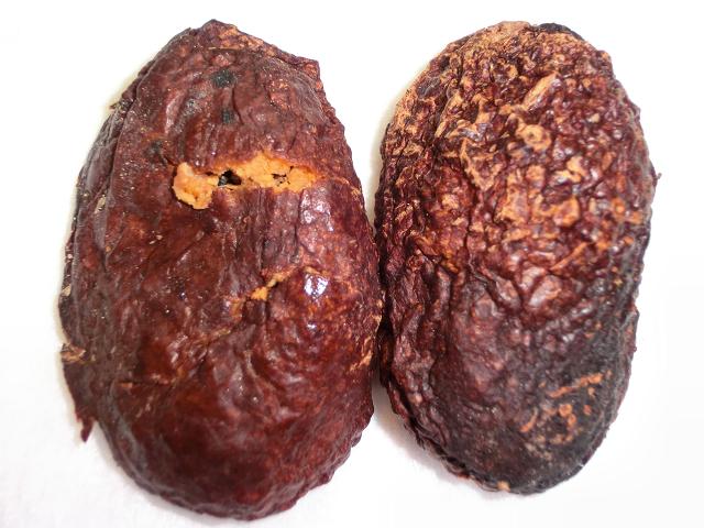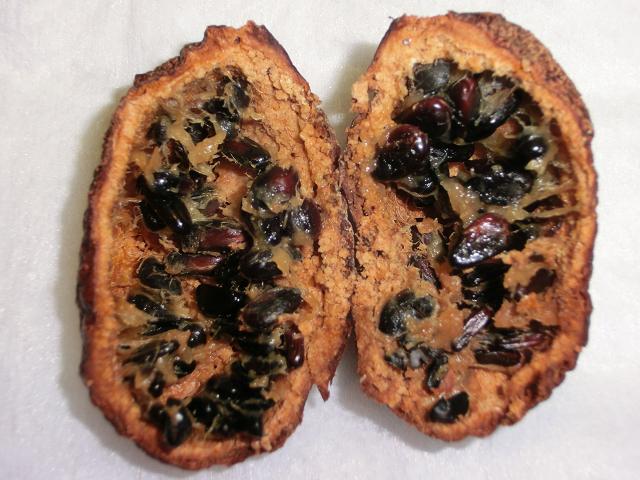 左写・中写が、後日見つけたムベの干からびた実です。