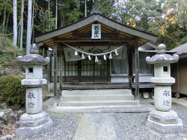 急降下して麓に出ると、そこには新嶽大神を祀る立派な社がありました。