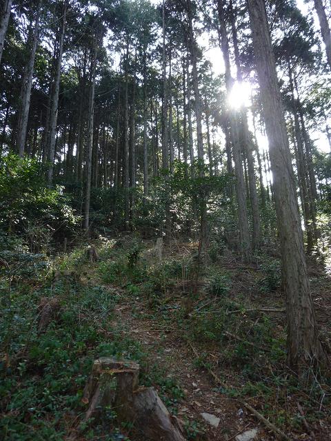 空堀状のトレイルに、杉の枝が溜まり、ちょっと歩きにくかったです。