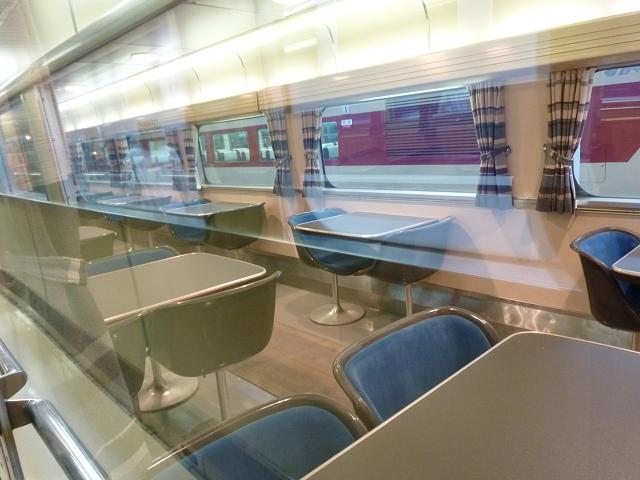 私が覚えているのは、食堂車ではなくビュフェというやつで、カウンターしか無かったように記憶していますが、「こだま」しか乗った事がないからかな・・・?