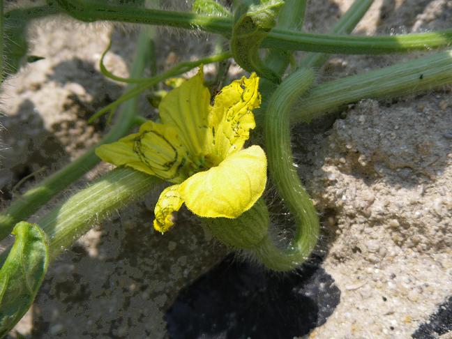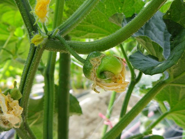 ・雌花も開花してから時間が経っておらず、みずみずしく柔らかく、人工授粉の際に花粉の付着がはっきりと確認できる。