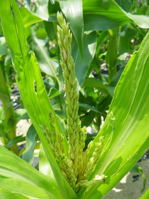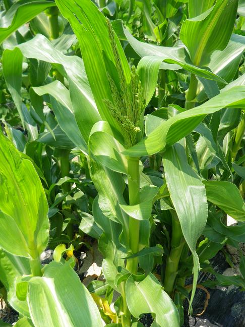・スイートコーンの穂がググッと伸びました。