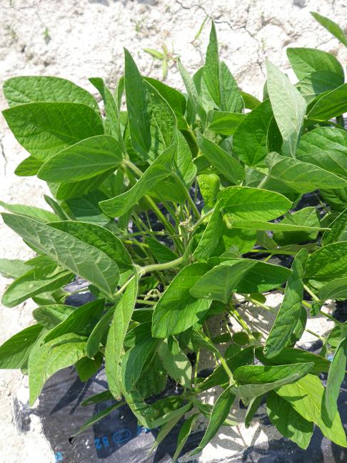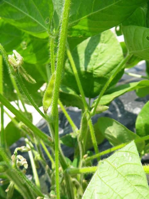 ・エダマメの葉の密集が空いてきて、空いた隙間に実が確認できました。