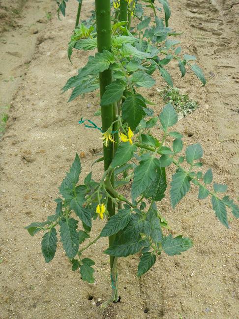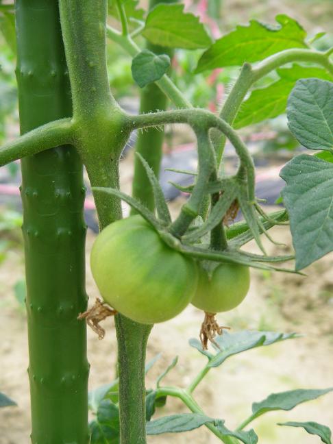 トマト畑では実の数が増えて、それぞれビー玉ぐらいに肥大してきました。