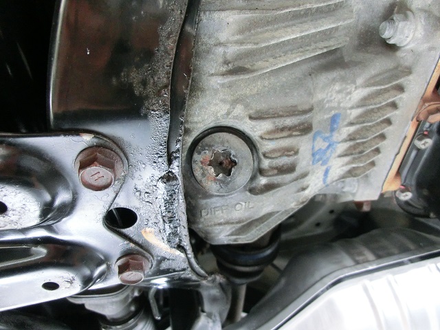フロントデフにはフィラーキャップは無く、ドレンボルトのみでした。