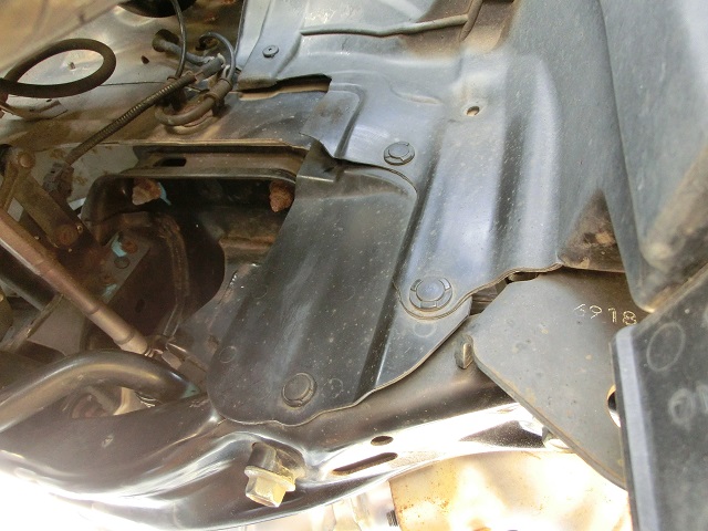 下からの作業は、フロントパイプが邪魔するので、ホイールカバーの一部を取り外しました。