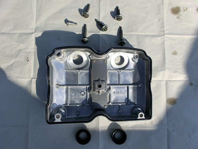 カバー清掃後 新調したパッキン類とワッシャー 組み付け完了