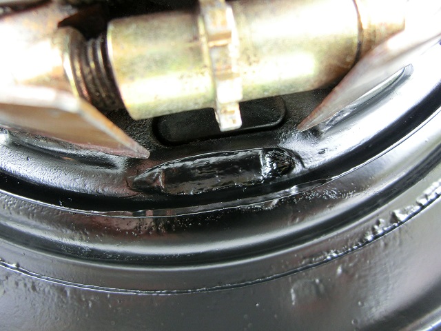 ブレーキローターとバックプレートが緩衝することが表向きの原因なので、再度バックプレートの擦っている部位を確認し、その部位を削合し、暫間的にマジックで塗装し、再度経過観察することにしました。(~_~;)ハァ…