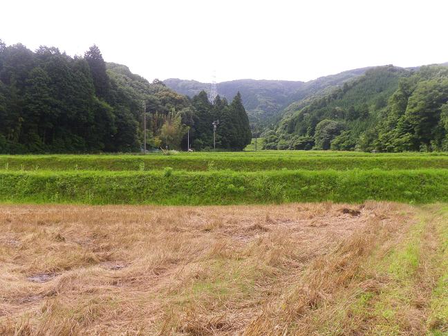 麓の麦畑では、収穫が終わっていました。(左写)